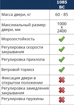 - Доводчик морозостойкий и стабильно работает в диапазоне –35°С…+45°С.