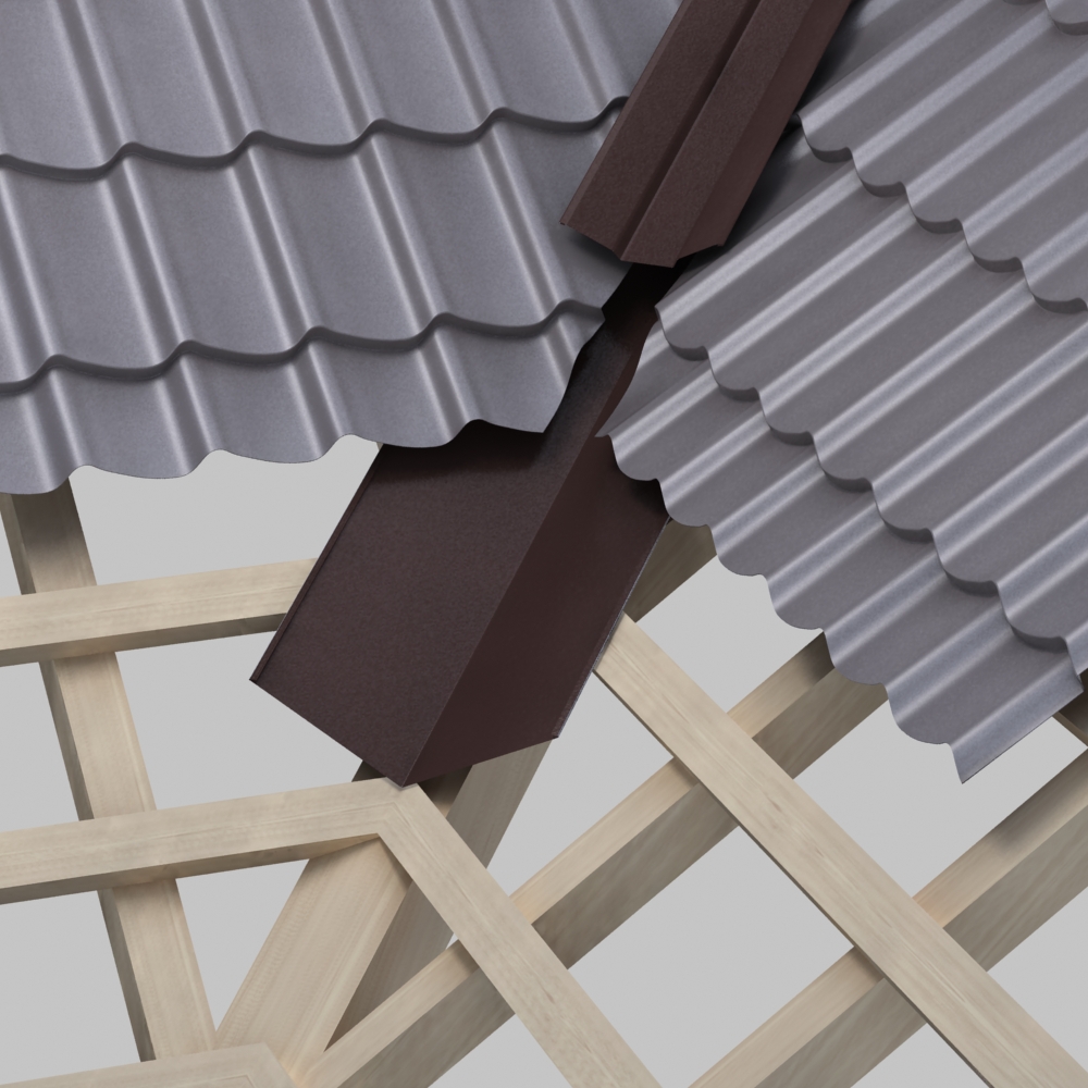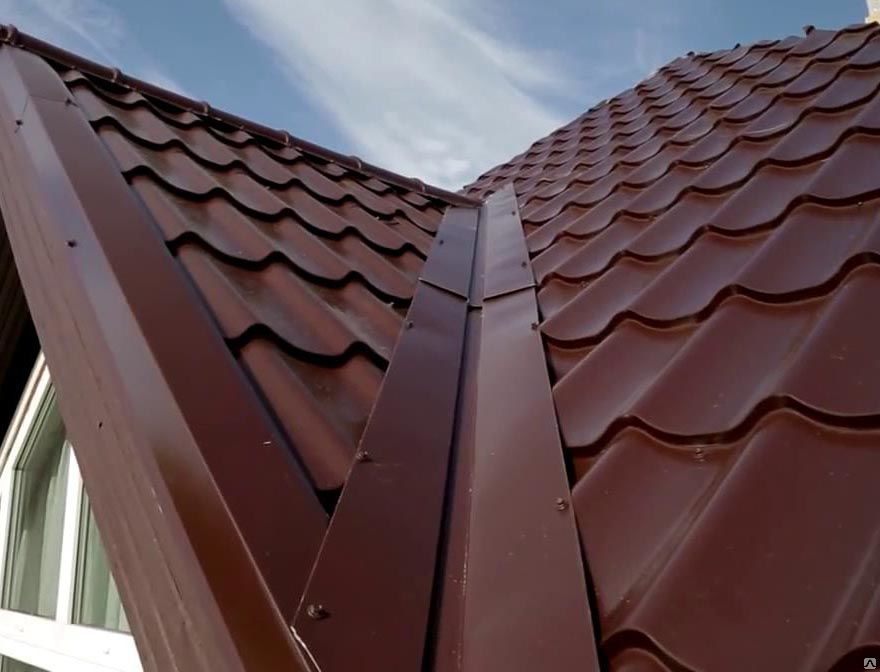Верхняя (наружная) ендова для металлочерепицы - это кровельный доборный элемент в виде внутреннего угла, располагающийся на стыке кровельных скатов.