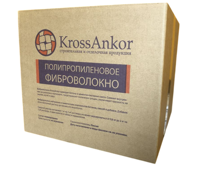 Фиброволокно 18 мм для цементных растворов 10 кг KrossAnkor — это надежная полипропиленовая армирующая добавка для бетона, стяжки, штукатурки и других строительных смесей. Материал предназначен для повышения прочности и долговечности цементных составов, помогает снизить риск усадочных трещин, улучшает структуру раствора и делает поверхность более качественной после набора прочности. Фибра 18 мм подходит для профессионального и частного строительства, а фасовка 10 кг удобна для регулярного применения на объектах различного масштаба.