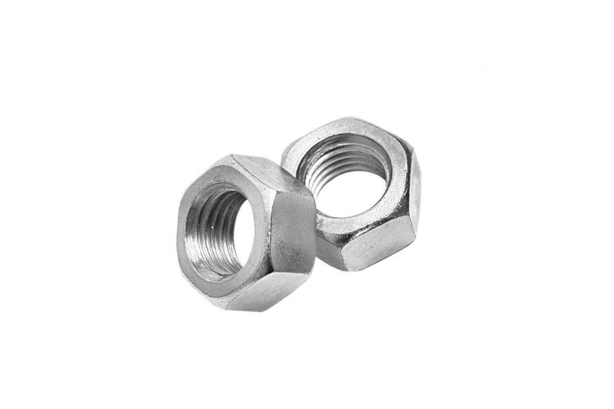 Гайка шестигранная, изготовлена из низкоуглеродной стали с цинковым покрытием. Применение: крепление и соединение узлов и деталей совместно с болтами, винтами и другими крепежными элементами в машиностроении и строительстве.