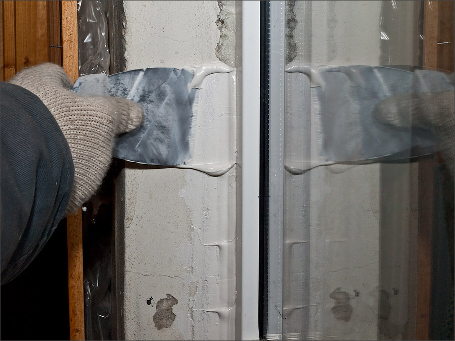 Для того, чтобы края слоя герметика выглядели ровными, предварительно на шов наклеивается строительный скотч, определяющий ширину будущего шва, затем наносится слой герметика,после чего скотч следует удалить. Герметик наносят на поверхность монтажной пены с помощью
