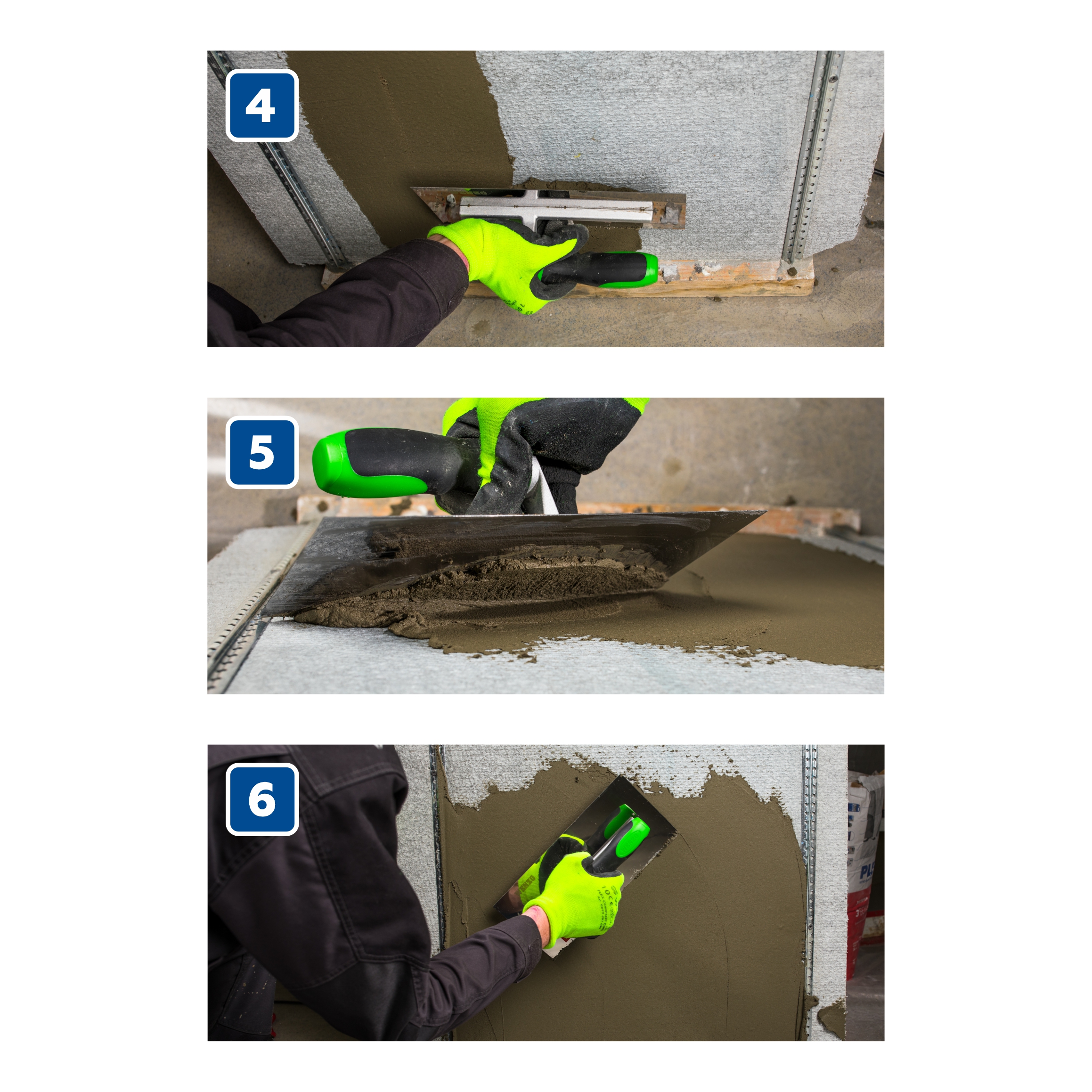 - В случае перерыва в работах (не более 2-х часов) подрежьте смесь перпендикулярно поверхности, заклейте скотчем или укройте влажным материалом