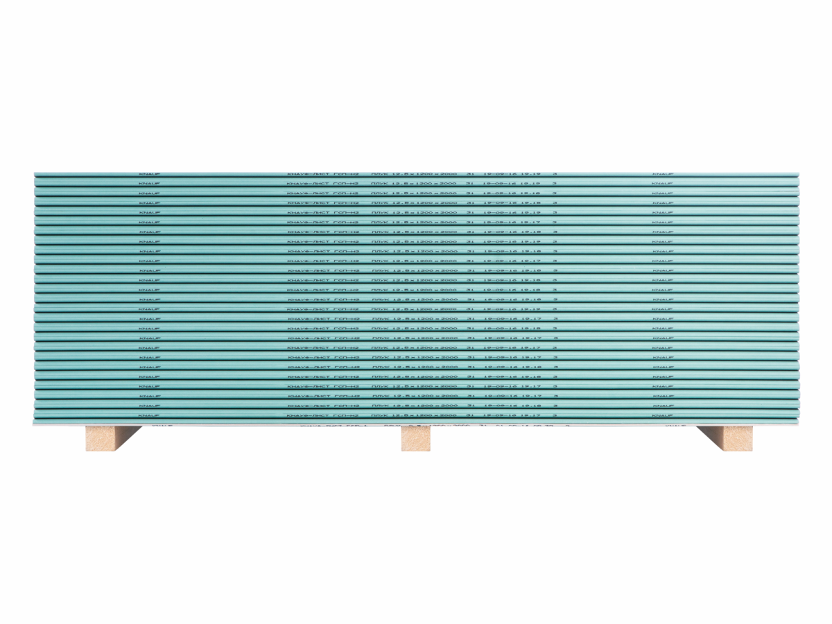 Гипсокартон влагостойкий КНАУФ (ГСП-Н3) - предназначен для устройства легких межкомнатных перегородок, подвесных потолков, облицовки стен , а также в зданиях и помещениях с влажным и мокрым влажностными режимами с обеспечением вытяжной вентиляцией и при условии защиты лицевой поверхности, например: гидроизоляцией, водостойкими грунтовками, красками, керамической плиткой и т.п.