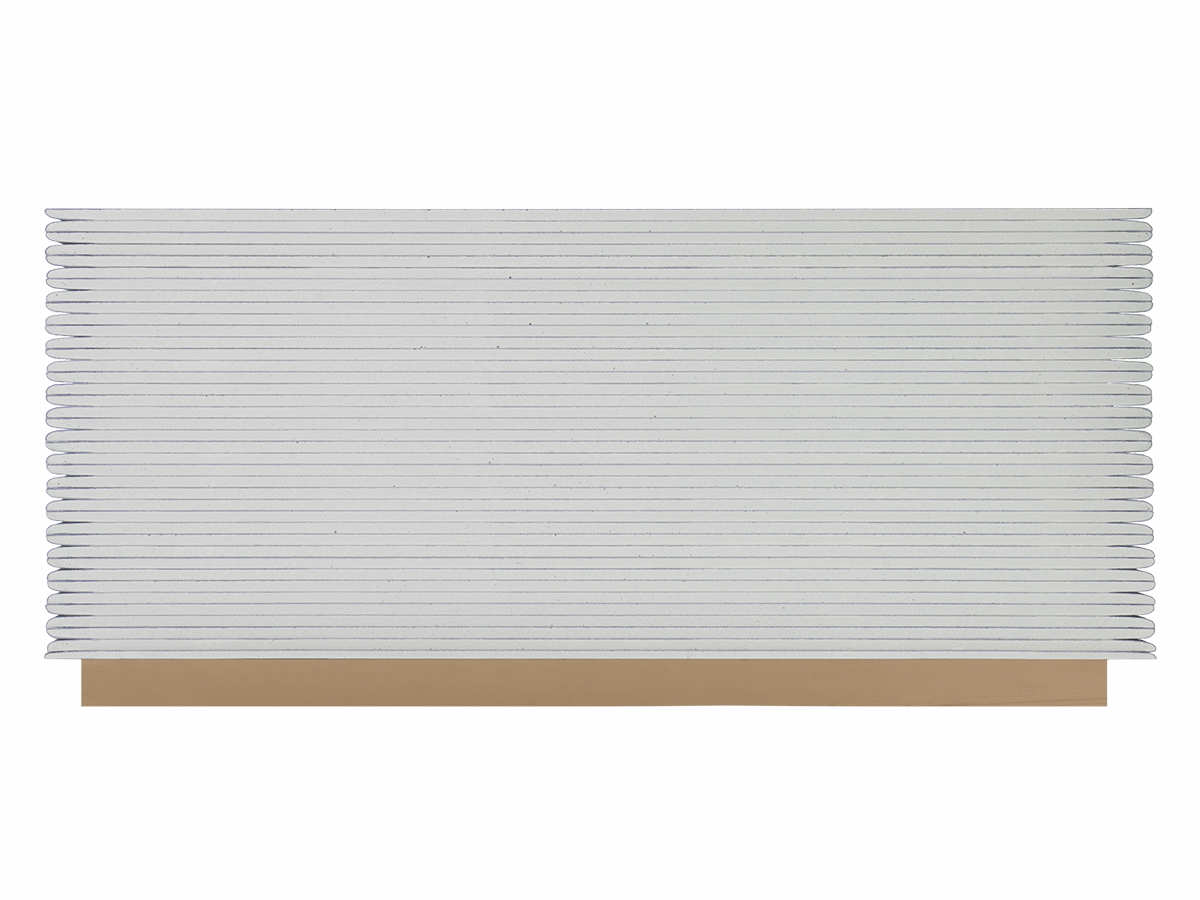 КНАУФ-лист (ГСП-DFH3IR) представляет собой прямоугольный материал, который состоит из двух слоев специального картона с прослойкой из гипсового сердечника с армирующими добавками, выпускается с полукруглой утоненной кромкой (ПЛУК), что является наиболее технологичным, с точки зрения надежности стыка.