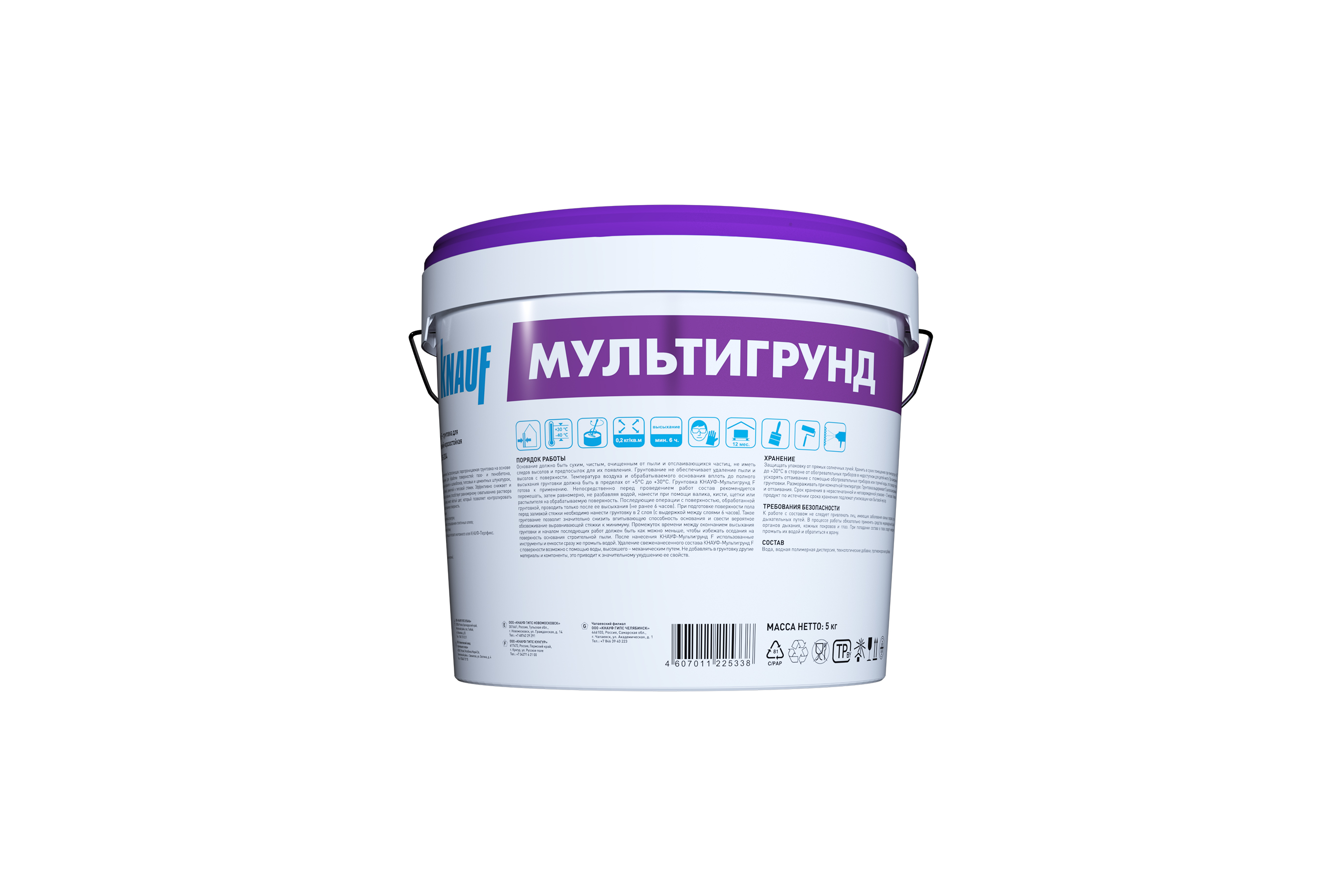 Грунт КНАУФ Мультигрунд универсальный F - грунтовка готовая к применению, быстросохнущая, морозостойкая, паропроницаемая на основе полимерной дисперсии для впитывающих оснований.