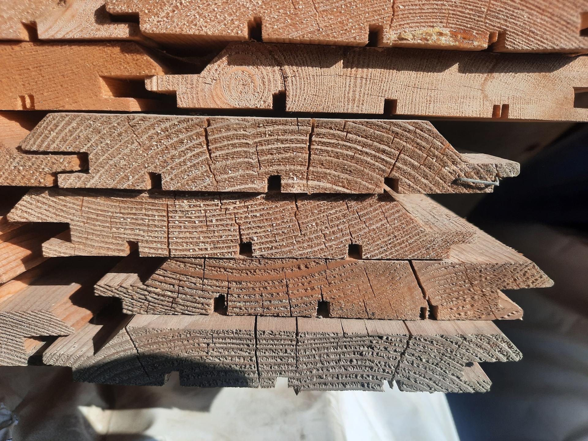 Профиль "Карельский" выгодно отличается от остальных видов применяемого профиля тем, что имеет более глубокий шип, имеющий усиление в нижней части, и глубокий паз. Это позволяет ламелям не расходиться и иметь всегда правильную геометрию и эстетичный вид, даже если были допущены ошибки при монтаже, или произошло неравномерное усыхание в ходе эксплуатации.