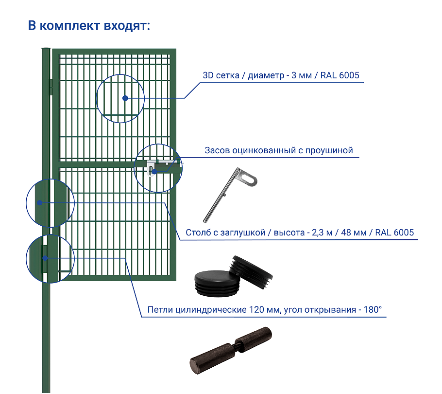Для заполнения используется сварная сетка диаметром 3,00 мм с полимерным покрытием (ППК).