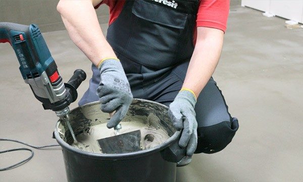 Для затворения смеси используйте теплую воду комнатной температуры (15-200С). Для перемешивания смеси с водой используйте миксер или дрель с насадкой, соблюдайте скорость вращения на уровне 400-800 об/мин. При перемешивании постепенно добавляйте воду, добиваясь получения однородной массы без комков. После получения однородной массы выдержите технологическую паузу. около 5 минут