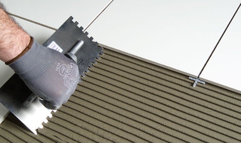 Рекомендации по шпателю: 6 мм – плитка 150?150 мм, 8 мм – плитка 300?300 мм. Для больших плиток наносите раствор и на основание, и на обратную сторону плитки.
