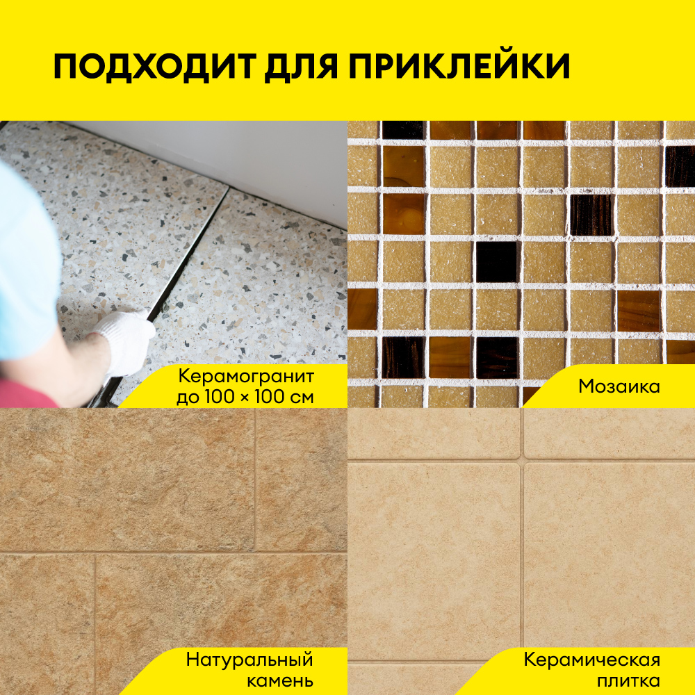 - Адгезия к керамограниту после выдерживания при н.у. через 28 суток более 1,1 МПа
