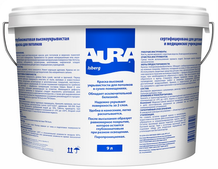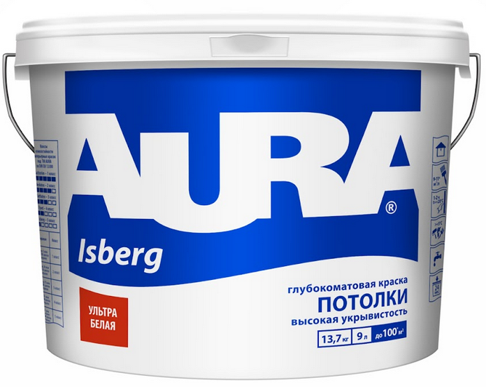 Краска для потолка Aura Interior Isberg белая 9л