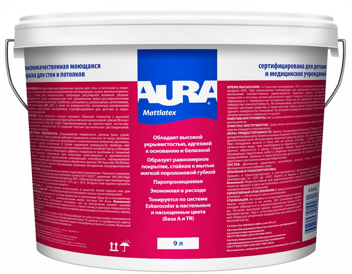 Краска моющаяся Aura Interior Mattlatex база А белая 9л