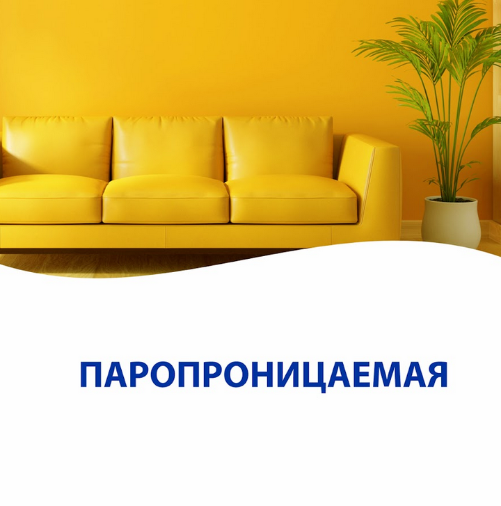 Матовая влагостойкая краска для стен и потолков внутри помещений с нормальной и повышенной влажностью, а также с возможными колебаниями влажности. Применяется по ранее неокрашенным или окрашенным водно- дисперсионными красками поверхностям: бетону, газобетону, асбоцементу, штукатуркам, шпатлевкам, кирпичной кладке, ДВП, ДСП, а также по поверхностям, оклеенным различными рулонными отделочными материалами. Сертифицирована для детских и медицинских учреждений. Белый – можно использовать без колеровки