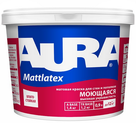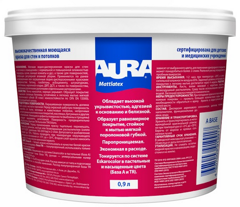 Краска моющаяся Aura Interior Mattlatex база А белая 0,9л