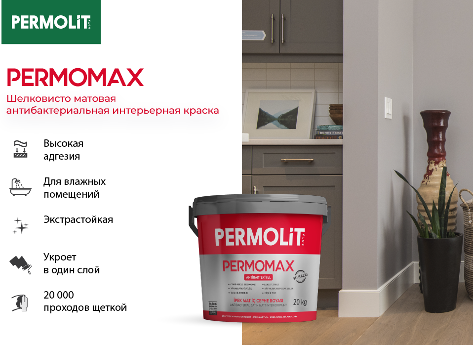Краска антибактериальная экстрастойкая Permomax шелковисто-матовая база TR бесцветная 7,5л