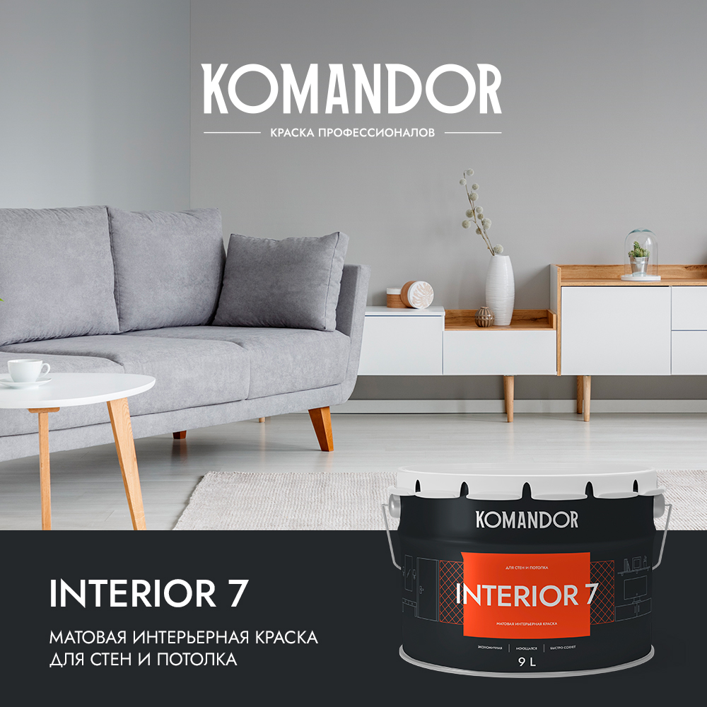 Матовая интерьерная водно-дисперсионная полиакриловая краска для стен и потолка Komandor Interior 7 применяется для помещений с высокой эксплуатационной нагрузкой. Разработана специально для окрашивания стен и потолков в помещениях с периодически повышенной влажностью: кухнях, коридорах.