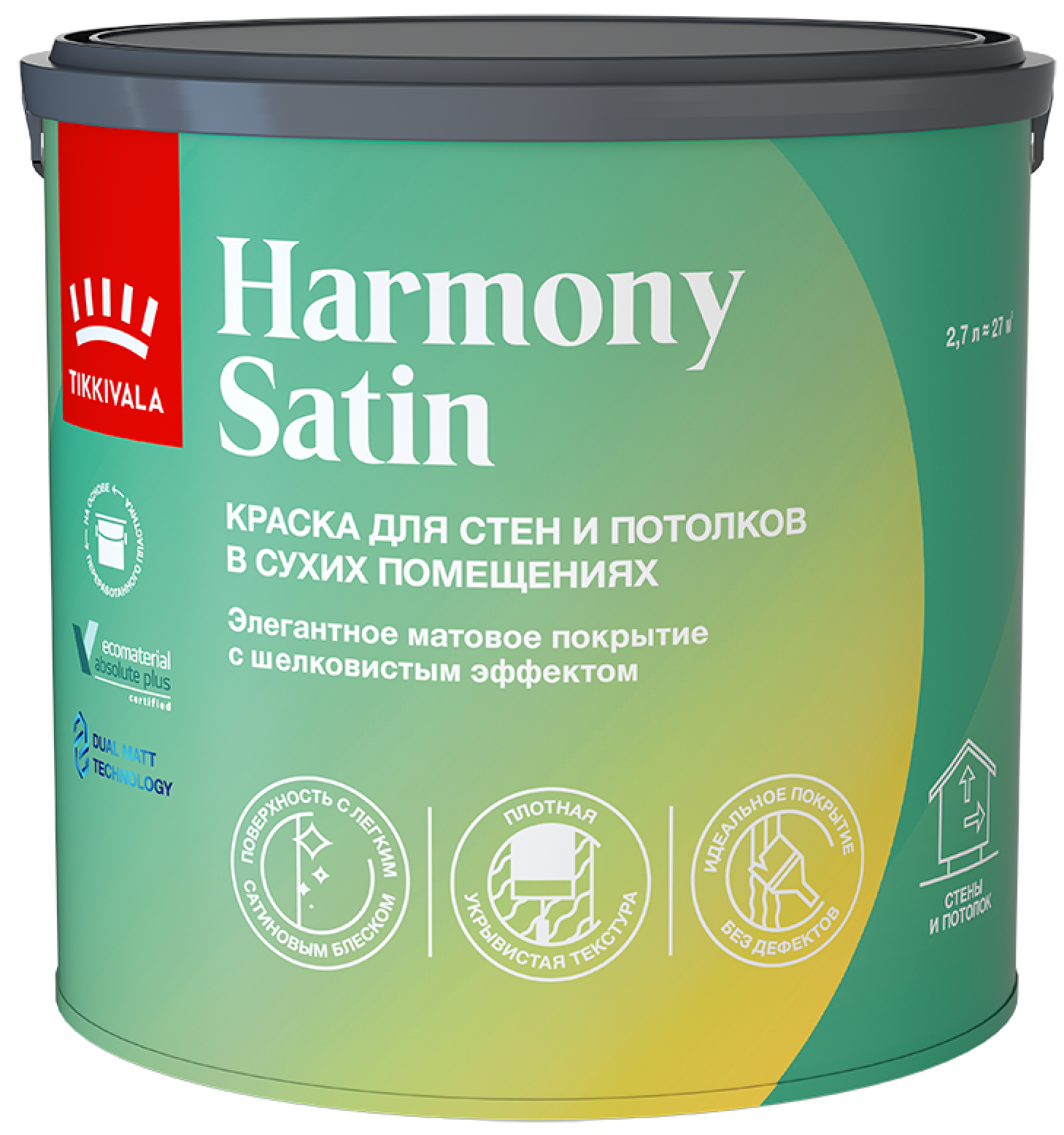 Краска моющаяся Tikkivala / Tikkurila Harmony Satin база A белая 2,7л
