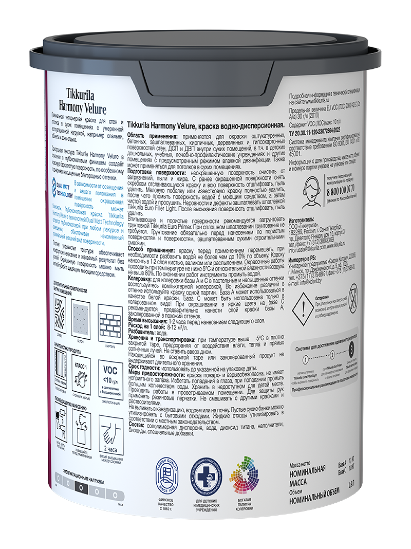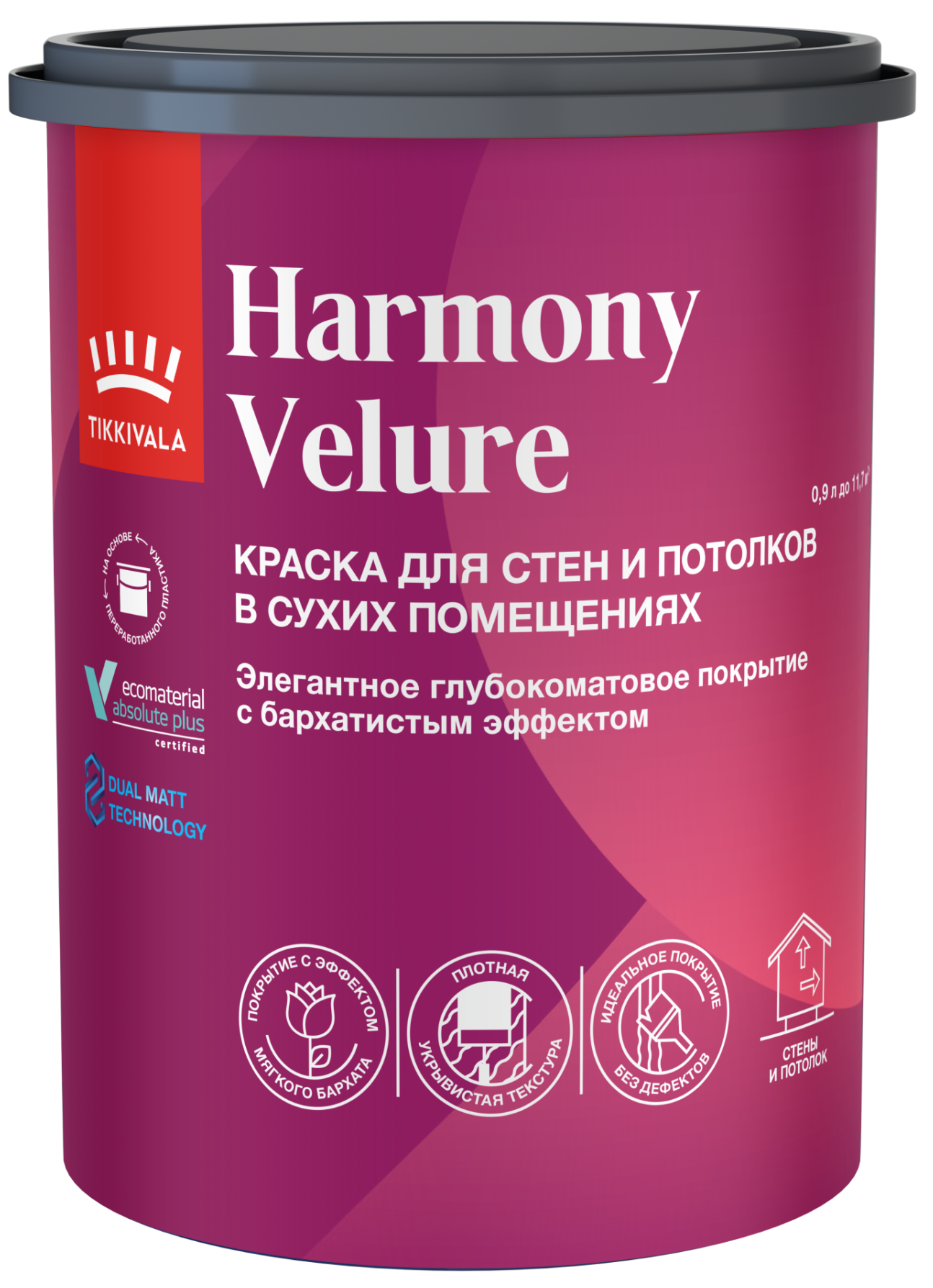 Краска моющаяся Tikkivala / Tikkurila Harmony Velure база С бесцветная 0,9л