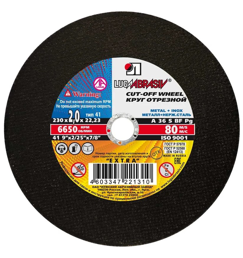 Круг отрезной по металлу Луга 230 х 22 х 2 мм