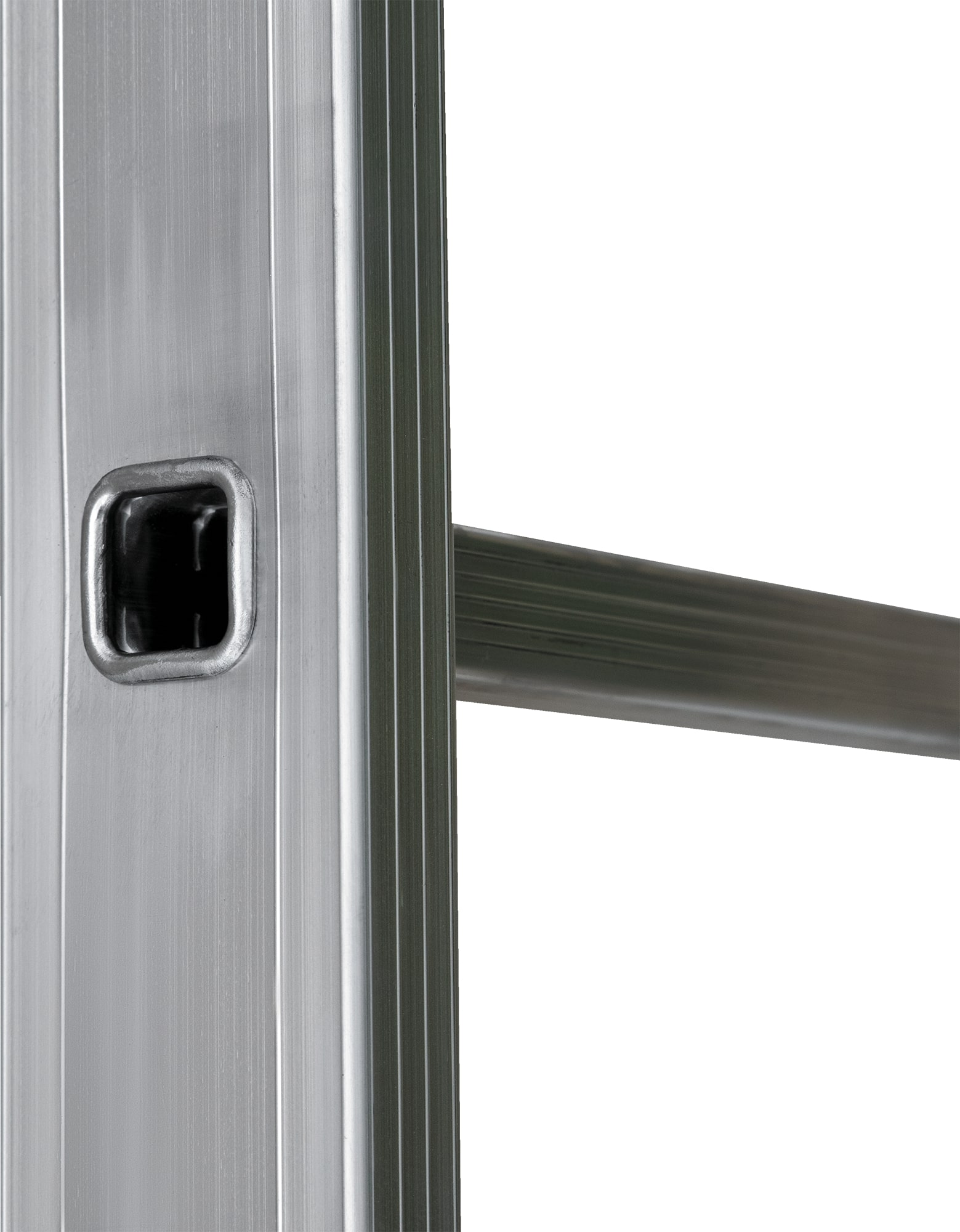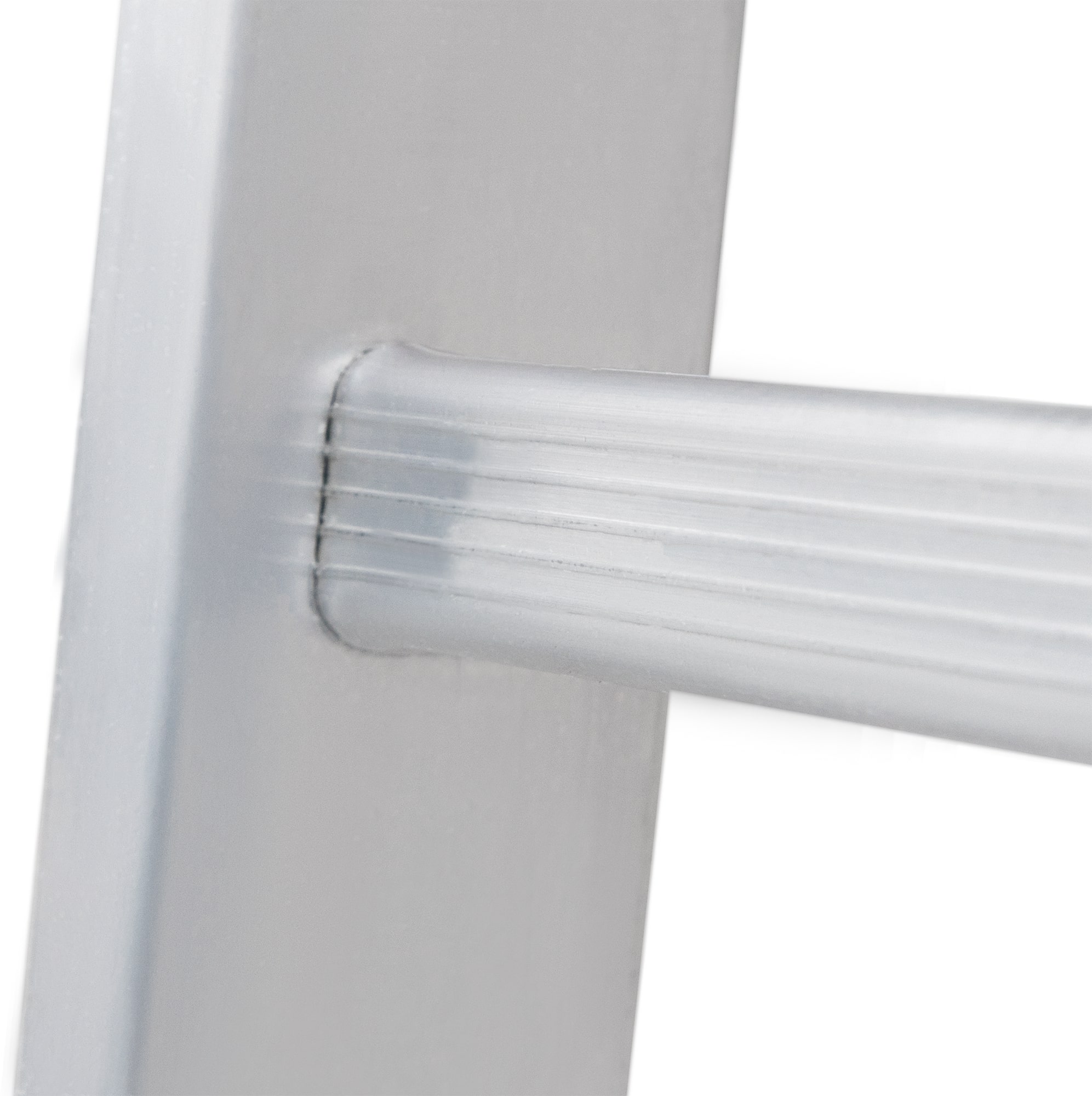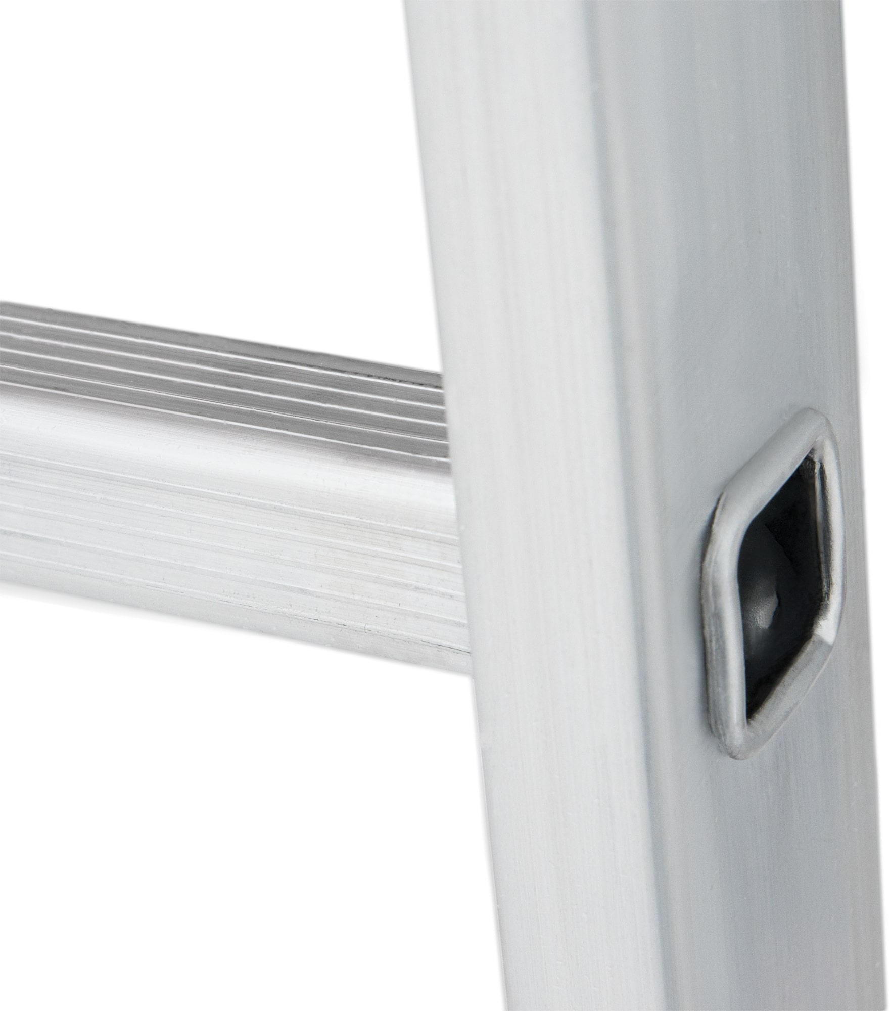 Удобная приставная лестница для безопасного доступа к рабочим местам на высоте. Изготовлена из экструдированного алюминиевого профиля, что обеспечивает легкость и прочность конструкции.