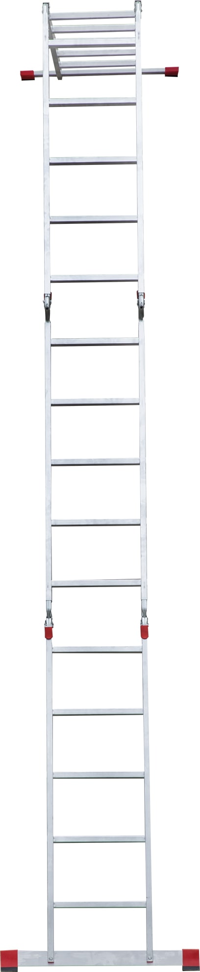 Удобная лестница-трансформер для использования в быту и профессиональных целях. Лестницу можно применять в качестве стремянки, приставной конструкции, помоста и приставной согнутой лестницы. Легко складывается для хранения и транспортировки, занимает мало места в сложенном состоянии.