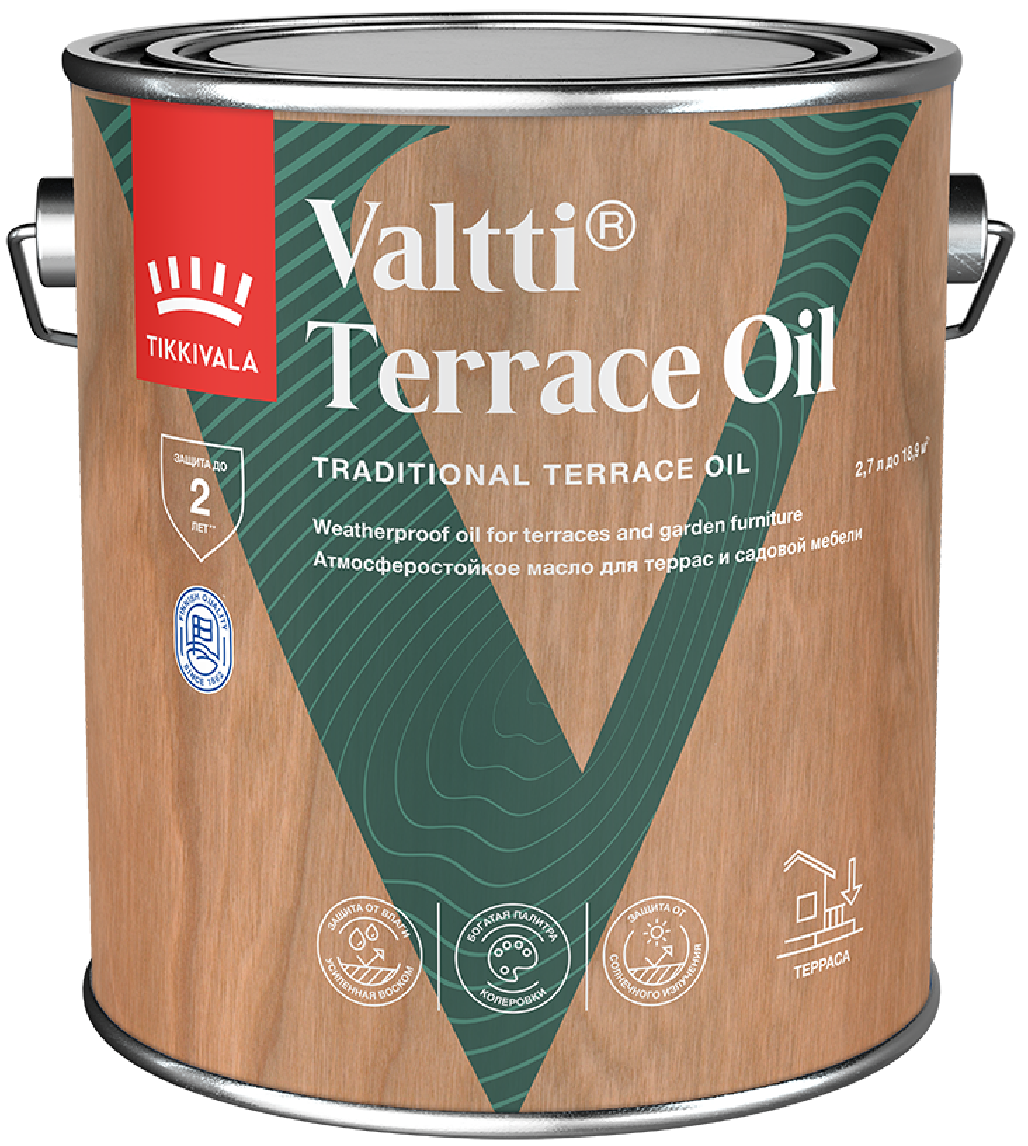 Масло для террас Tikkivala / Tikkurila Valtti Terrace Oil база EC бесцветное 2,7л