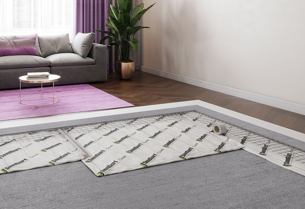 SoundGuard Cover Base - это вибро-, звукоизоляционный материал, состоящий из иглопробивного стекловолокнистого холста, спрессованного механическим способом, запаянный в защитную оболочку из спанбонда. Применяется в помещениях разного типа и назначения: при звукоизоляции полов — в качестве упругой вибродемпфирующей прокладки под стяжкой; в конструкции звукоизоляции стен и потолков — в качестве амортизирующего и шумопоглощающего слоя; в межэтажных перекрытиях — для ослабления конструкционного шума.