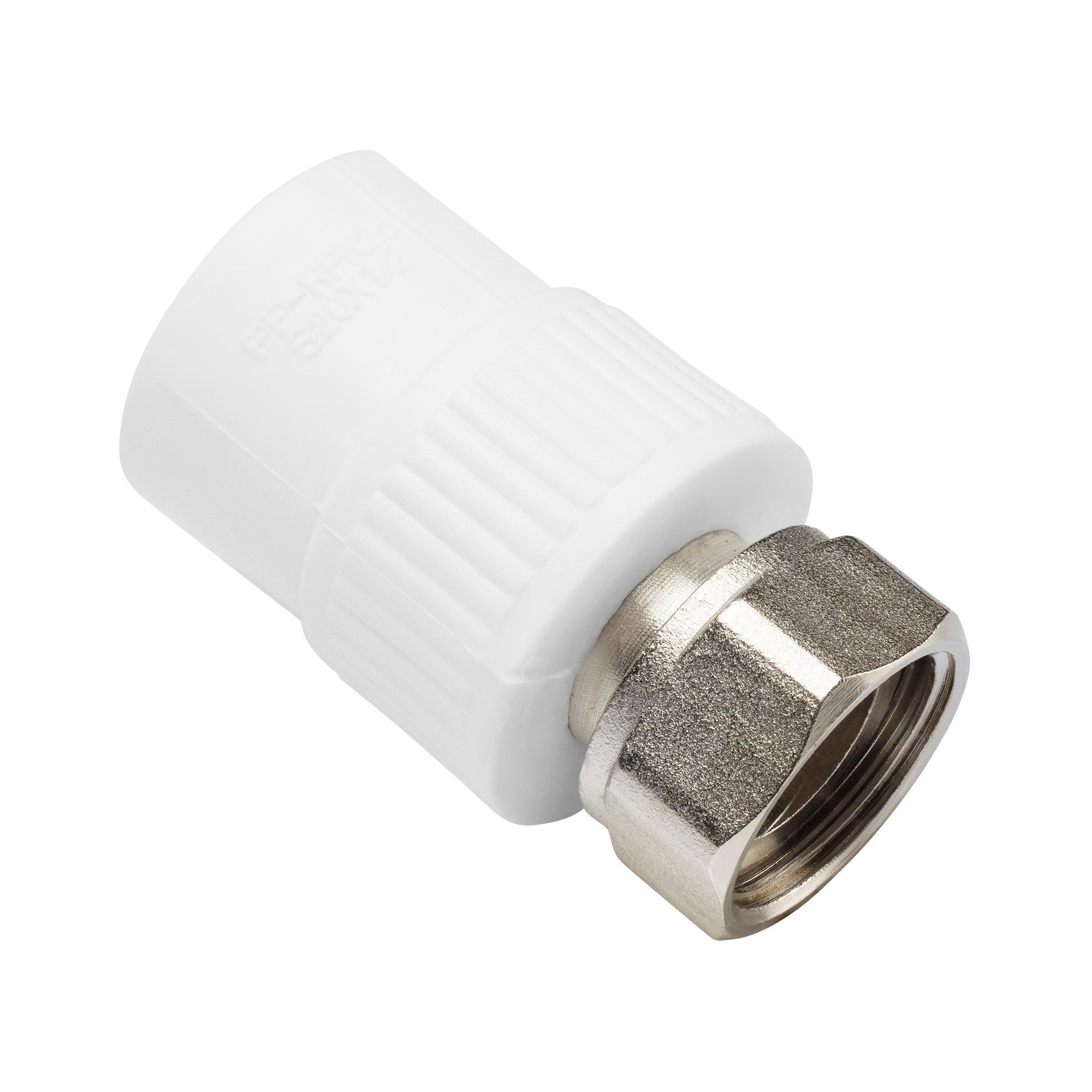 Муфта полипропиленовая с накидной гайкой 20 х 3/4" ВР применяется для соединения ПП (полипропиленовых) труб с фитингами.
