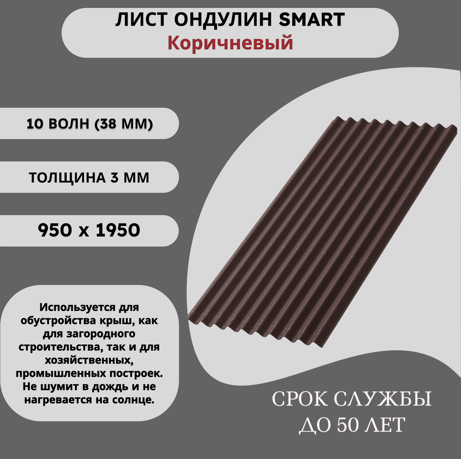 Лист Ондулин Смарт коричневый 0,95 х 1,95 м
