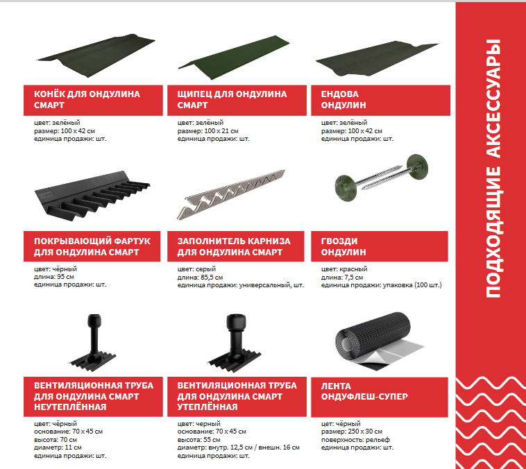 В компании «Материк» Ондулин Смарт можно приобрести поштучно со всеми необходимыми комплектующими с доставкой или на условиях самовывоза со складов.