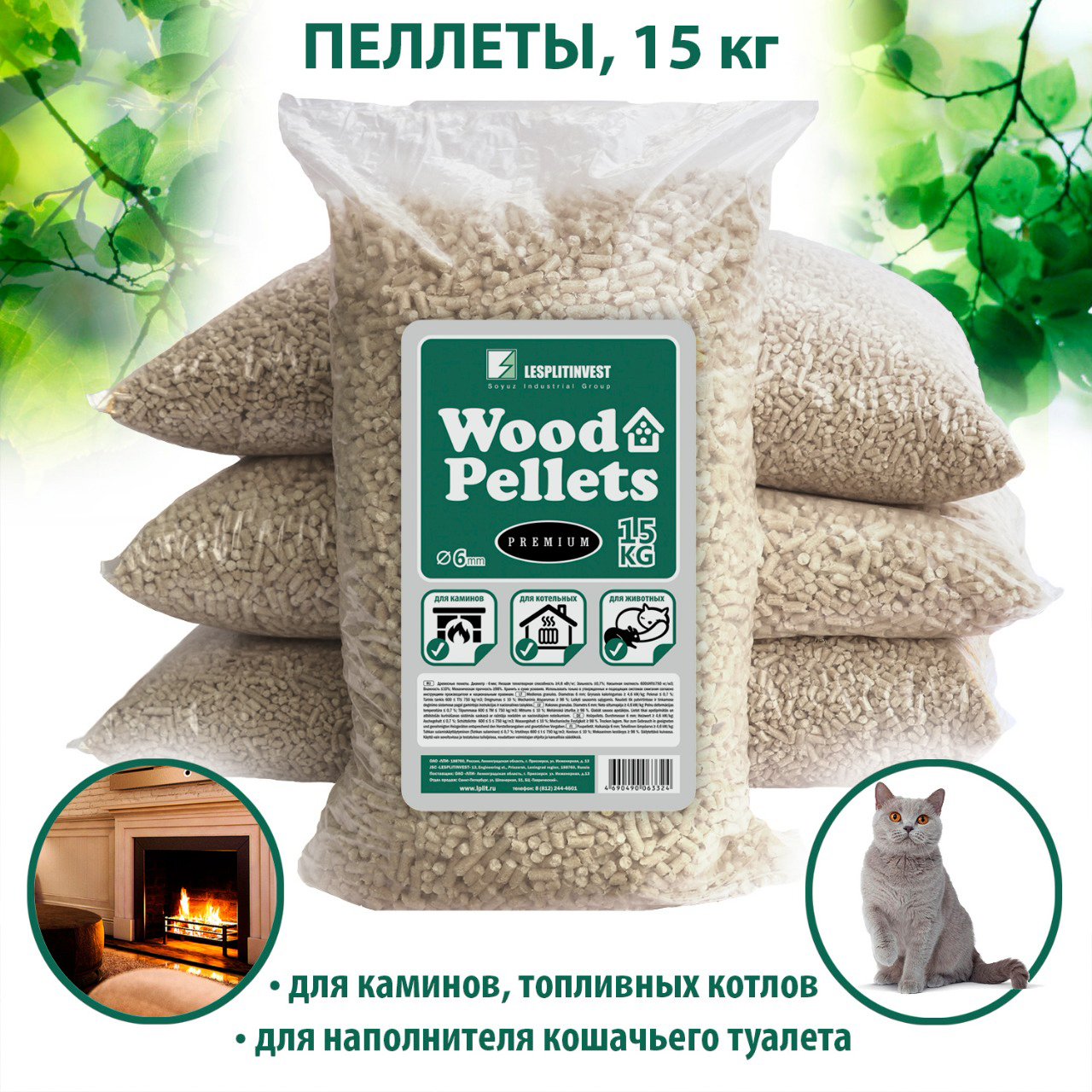 Пеллеты 6мм светлые 15кг