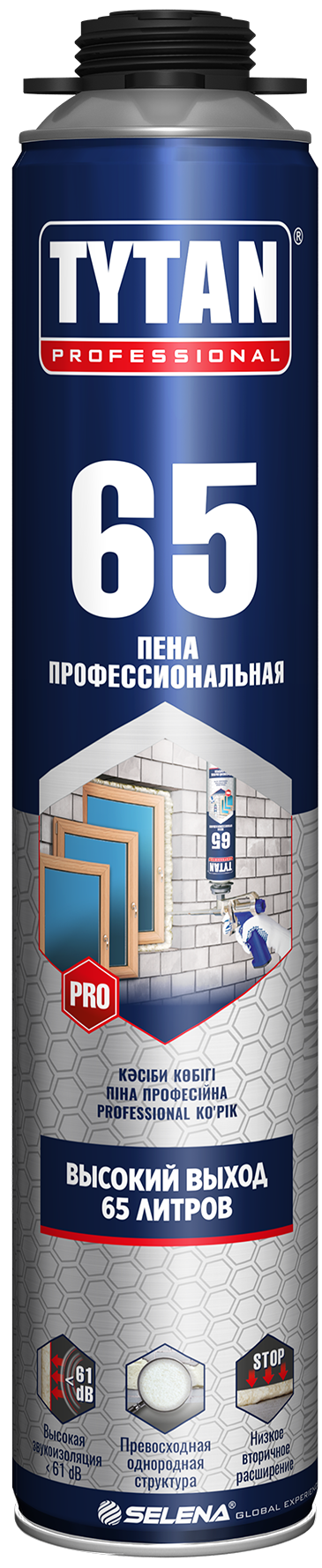 Пена профессиональная TYTAN 65 - готовая к применению однокомпонентная полиуретановая пена, застывающая под воздействием влаги воздуха, специально рекомендована для широкого спектра применений в области профессионального монтажа, герметизации и изоляции в строительстве. Изготовленная по инновационной рецептуре, пена быстро застывает и имеет однородную мелкоячеистую структуру на срезе.