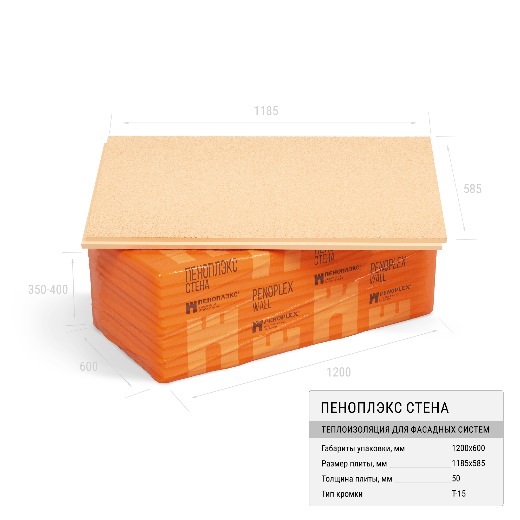 Пеноплэкс Стена Пенополистирол экструдированный 50 х 585 х 1185 мм