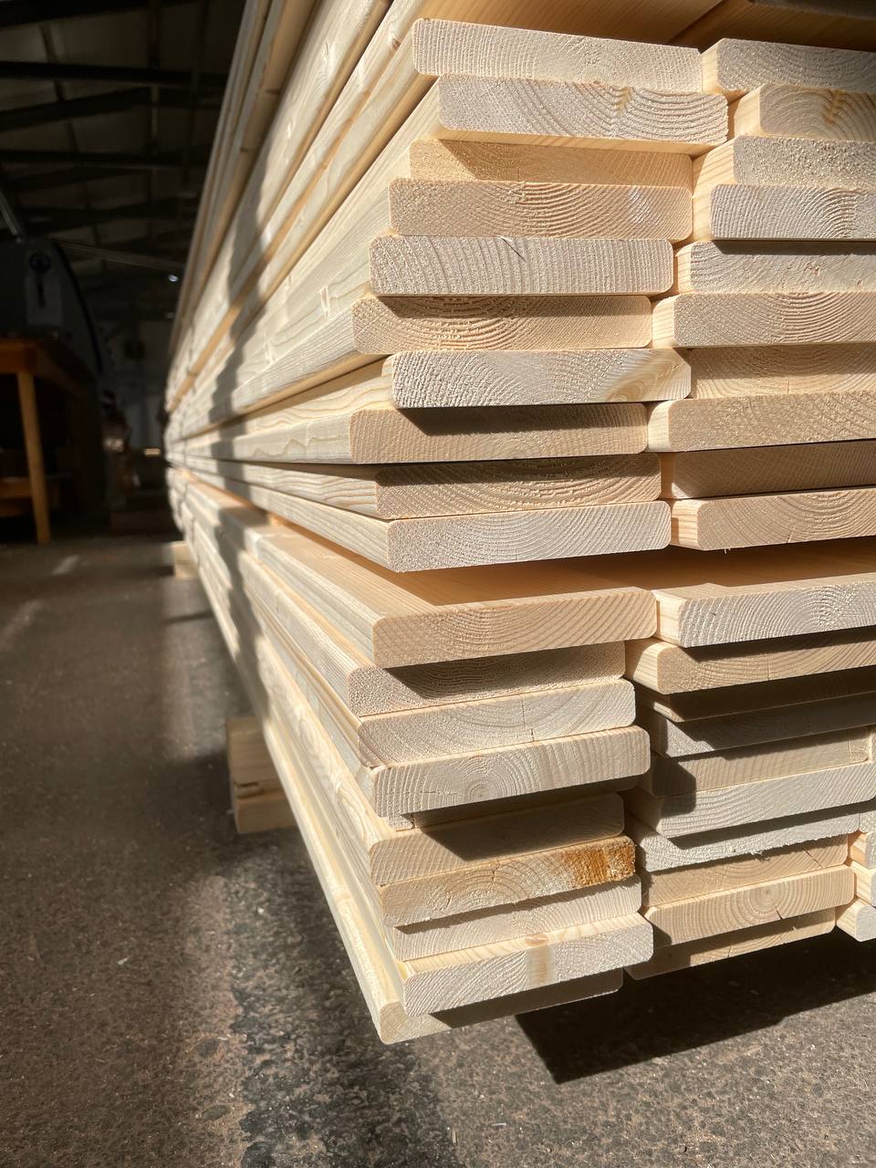 Пройдя камерную сушку, изделие приобретает влажность, не превышающую 18%, что в дальнейшем гарантирует минимальную усадку материала. После строжки доска приобретает правильные заданные геометрические размеры, гладкую поверхность и срезанные под углом кромки. Благодаря уникальному скошенному краю, данный тип планкена выделяется возможностью установки со смещенным наложением, что уменьшает вероятность проникновения влаги во время дождливого сезона.