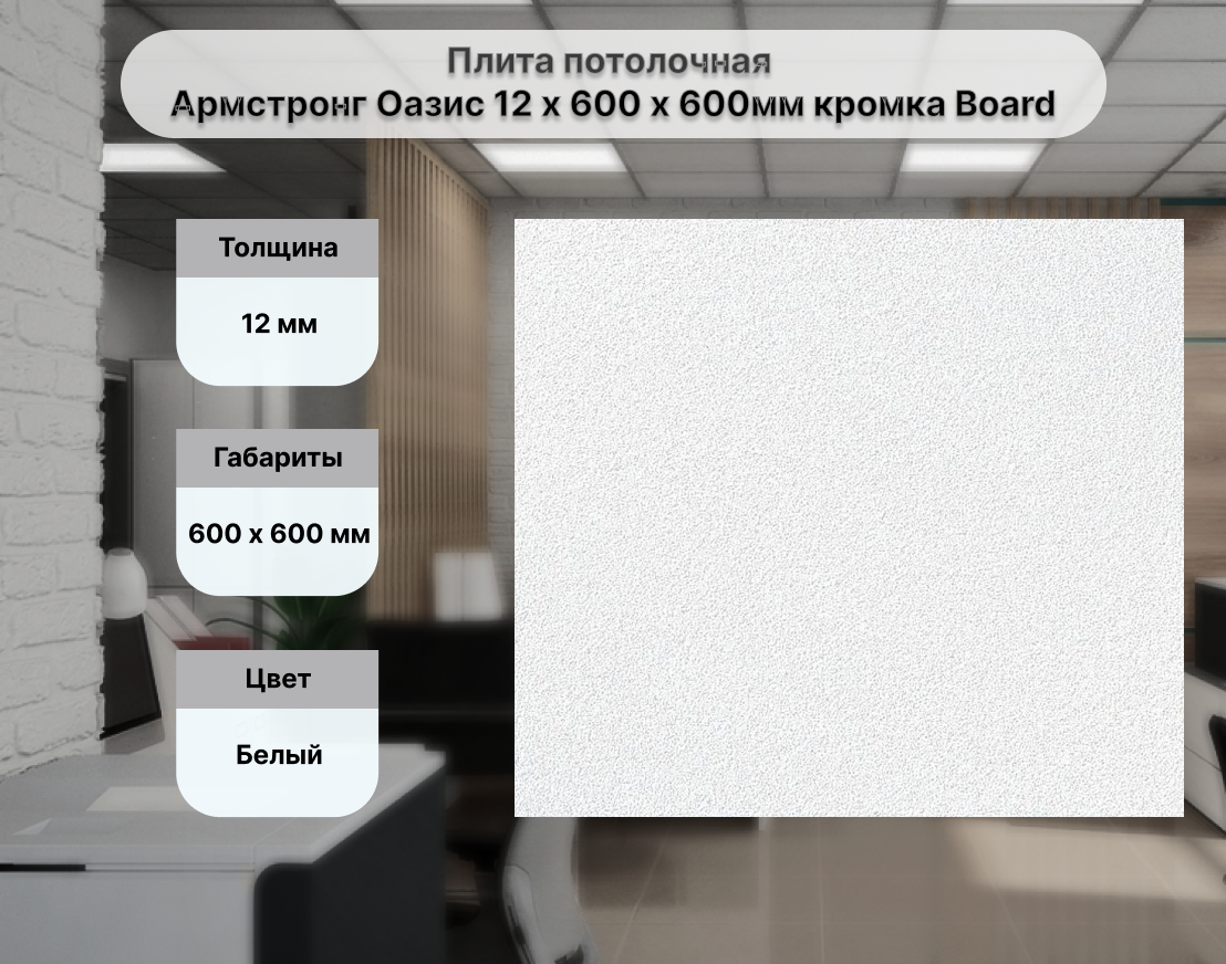 Плита потолочная Армстронг Оазис 12 х 600 х 600мм кромка Board