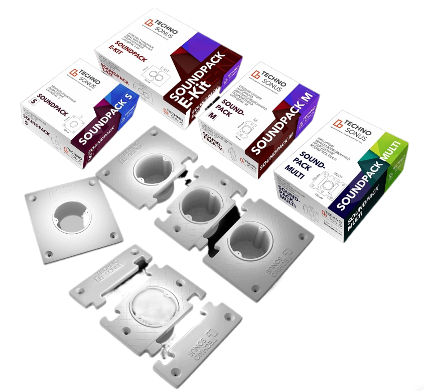 Наборные подрозетники СаундПак (SoundPack) применяются совместно с системами звукоизоляции и служат для повышения их эффективности, минимизируя проникновение звука через отверстия для электророзеток и выключателей. Изготавливаются из пожаробезопасного композитного материала на основе полимеров с добавлением минеральной крошки.