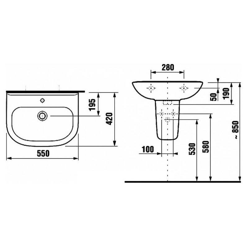 Полупьедестал несёт в себе, как опорную так и декоративную функцию, позволяяя ловко скрыть сантехнический сифон и создавая иллюзию продолжения литья от раковины.