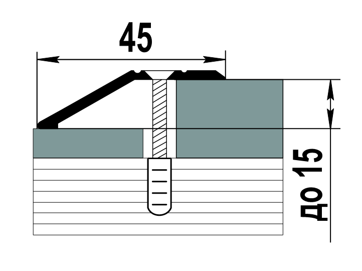 Разноуровневый порог используется для закрытия стыков двух разноуровневых поверхностей напольных покрытий с разницей в высоте до 15мм.