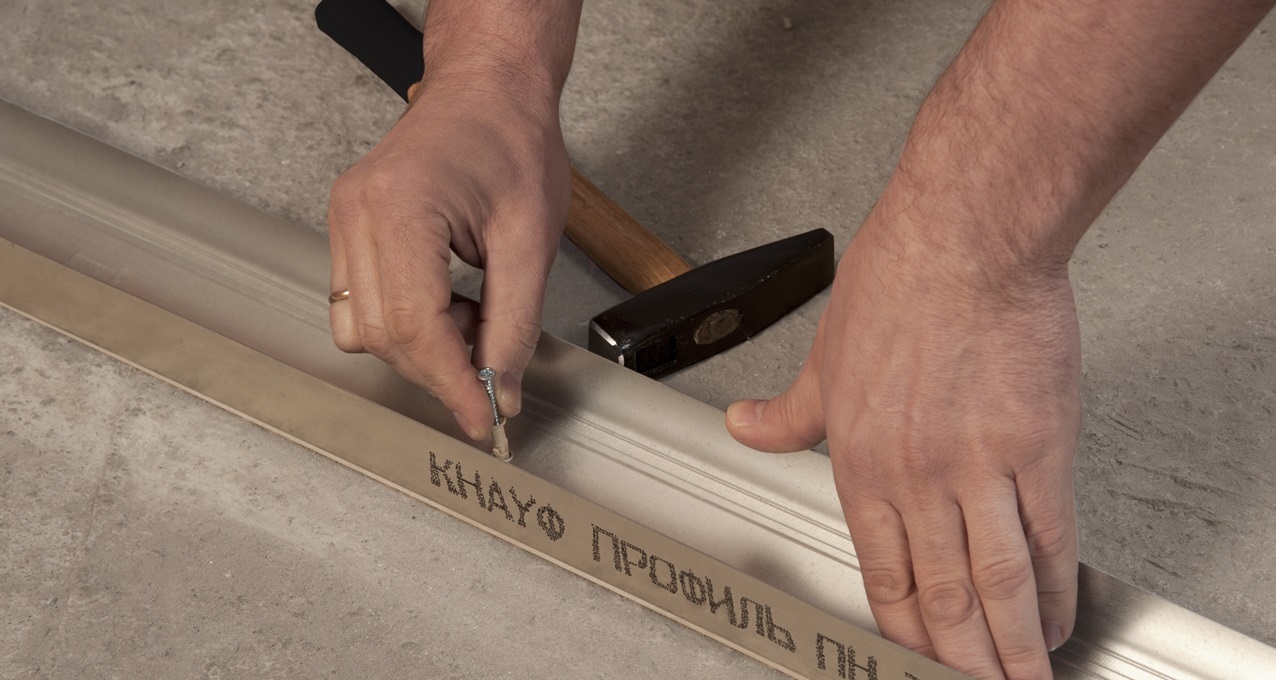 - Не допускайте промежутков между направляющими профилями по длине. Соединение должно быть встык.