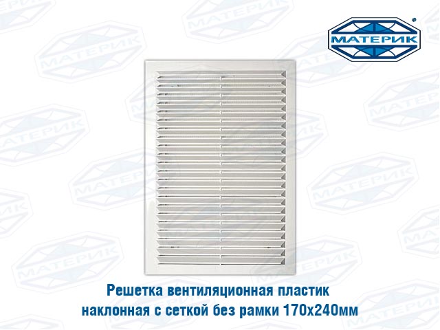 Решетка вентиляционная наклонная с сеткой и рамкой 170 х 240мм предназначена для систем естественной вентиляции для оформления входных и выходных отверстий вентиляционных каналов.