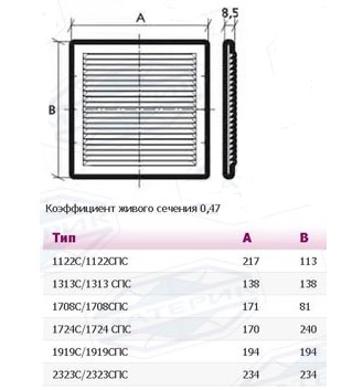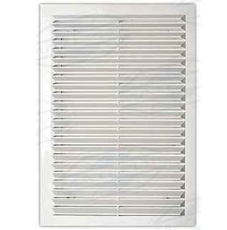 Решетка крепится с помощью шурупов или клея. Решетка вентиляционная оборудована наклонными жалюзи и защитной сеткой, не позволяющей проникать в вентиляцию насекомым и посторонним предметам. Решетка представлена без рамки.