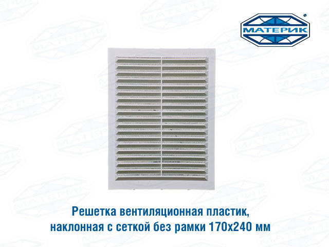Решетка вентиляционная наклонная с сеткой и рамкой 170 х 240мм выполнена из высококачественного АБС-пластика, устойчивого к УФ-лучам и другим внешним воздействиям.