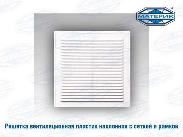 Решетка вентиляционная наклонная с сеткой и рамкой 210х210мм