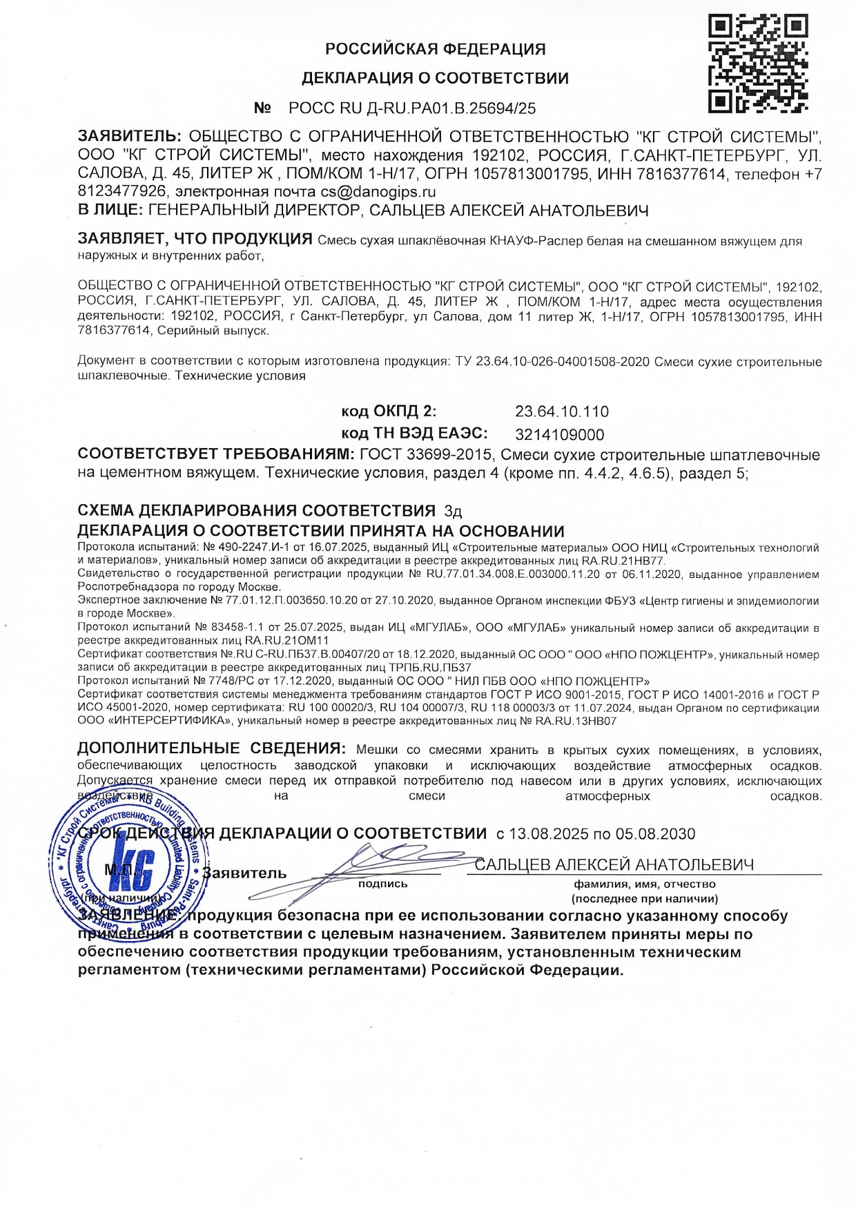 Шпаклевка цементно-полимерная финишная белая КНАУФ Раслер 20 кг - сухая шпаклевочная белая смесь на комплексном вяжущем с полимерными добавками. Новинка от компании КНАУФ из премиальной линейки цементных смесей PRO Line Cement.