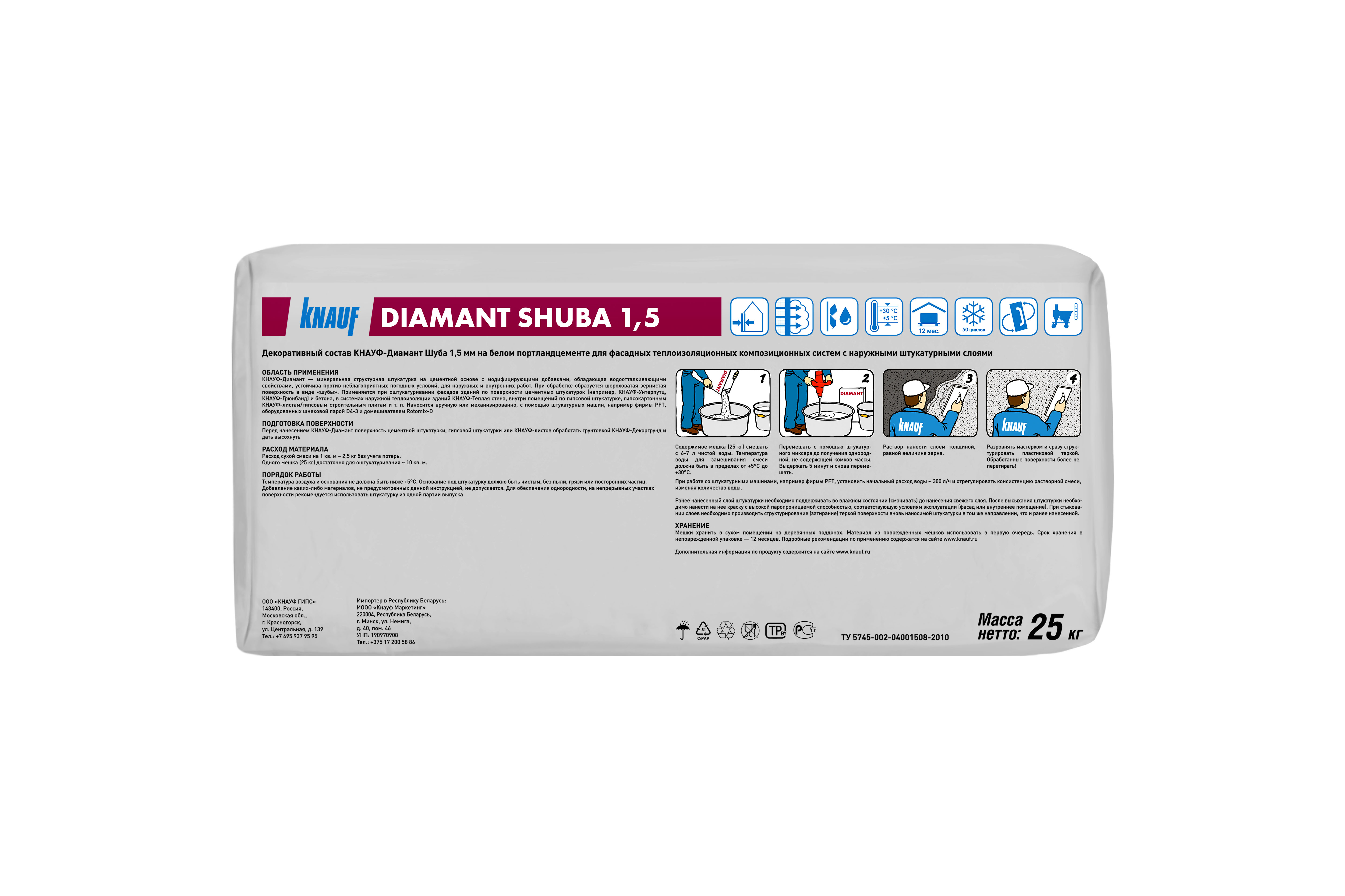 Штукатурка КНАУФ Диамант цементная декоративная шуба 1,5 мм 25кг