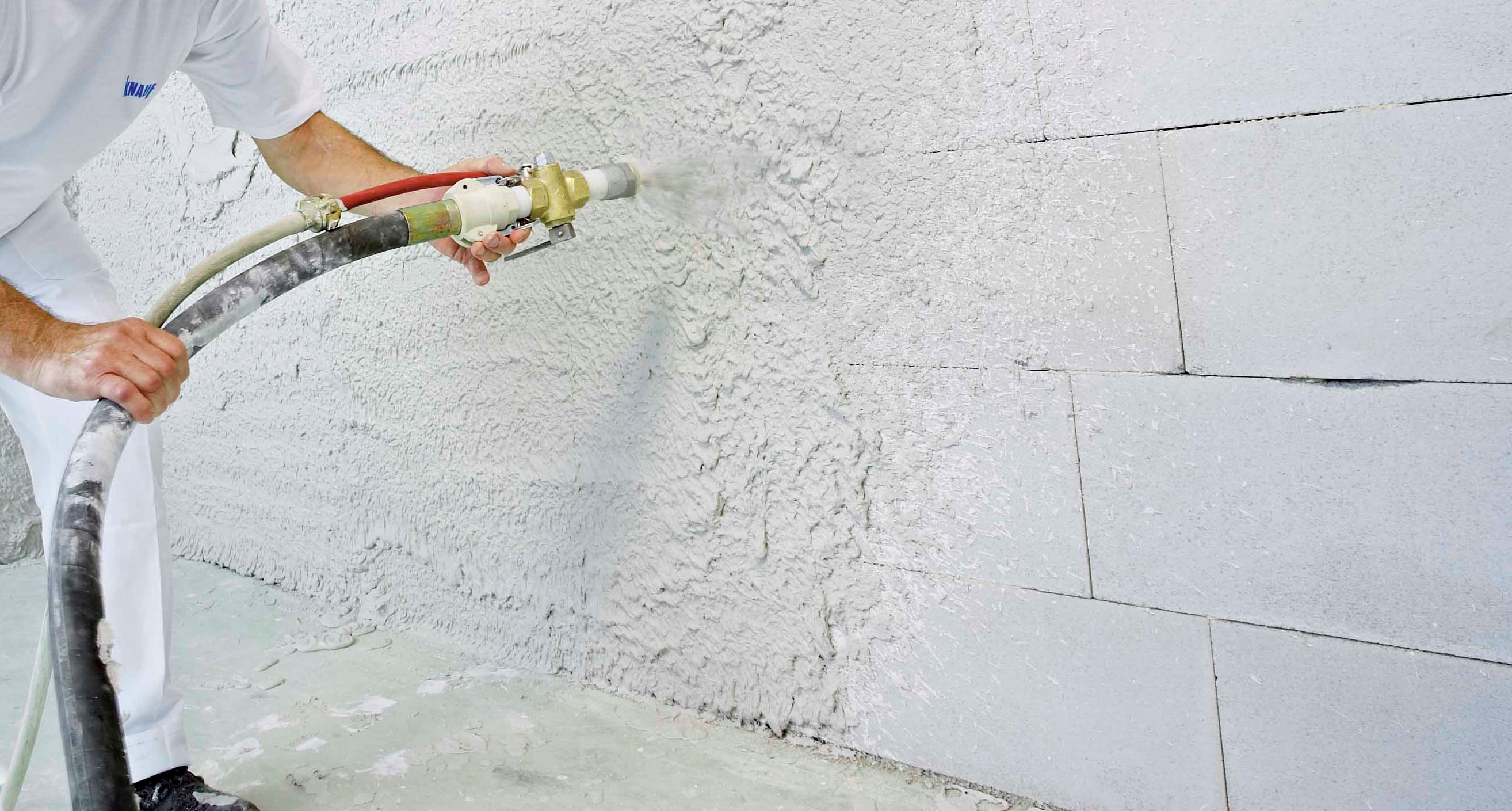 - Нанесение за один намет штукатурного слоя толщиной до 50 мм без предварительного обрызга. При необходимости возможно нанесение утолщенных слоев за два раза.