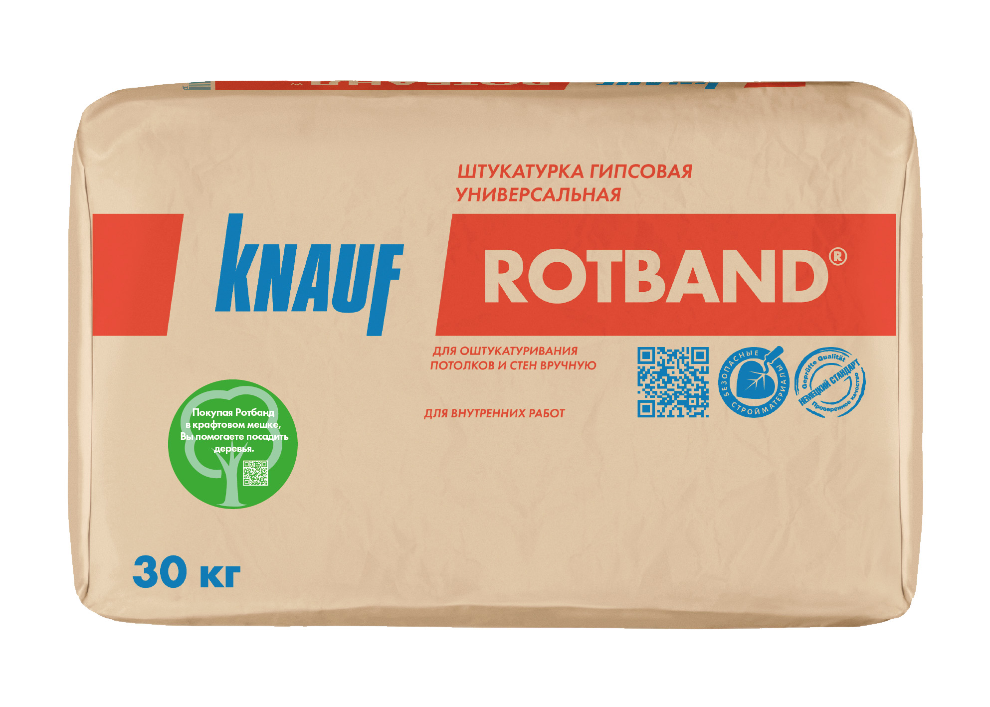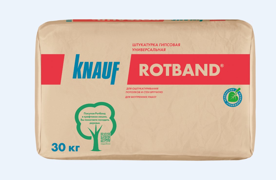 КНАУФ-Ротбанд - универсальная гипсовая смесь с улучшенной адгезией, предназначенная для выравнивания стен и потолков внутри помещений.
