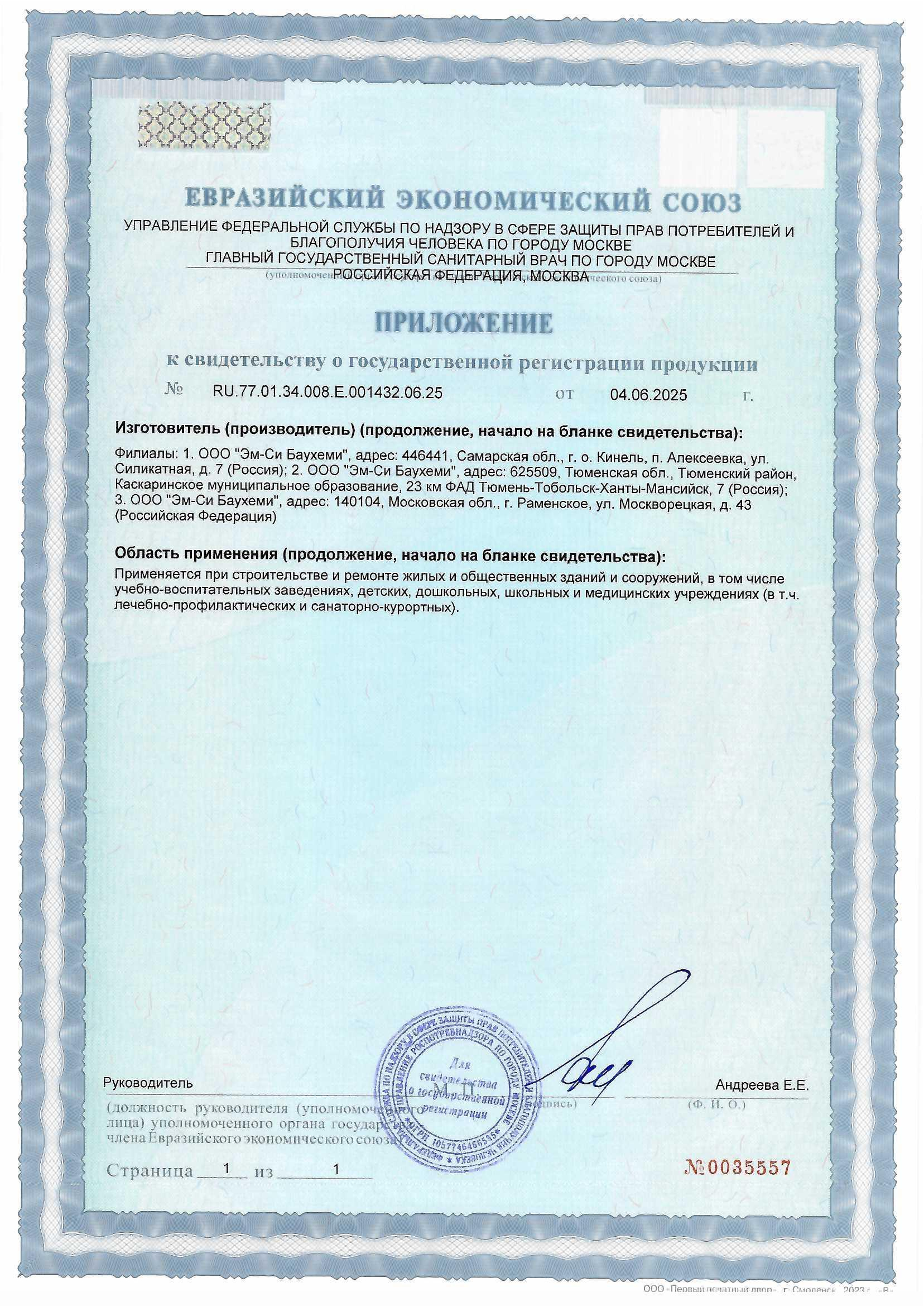 • Расход материала при толщине слоя в 1 мм, 1,25- 1,35 кг/м?