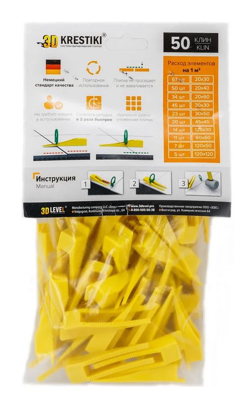 Система выравнивания плитки клин 3D Крестики 50 шт/уп