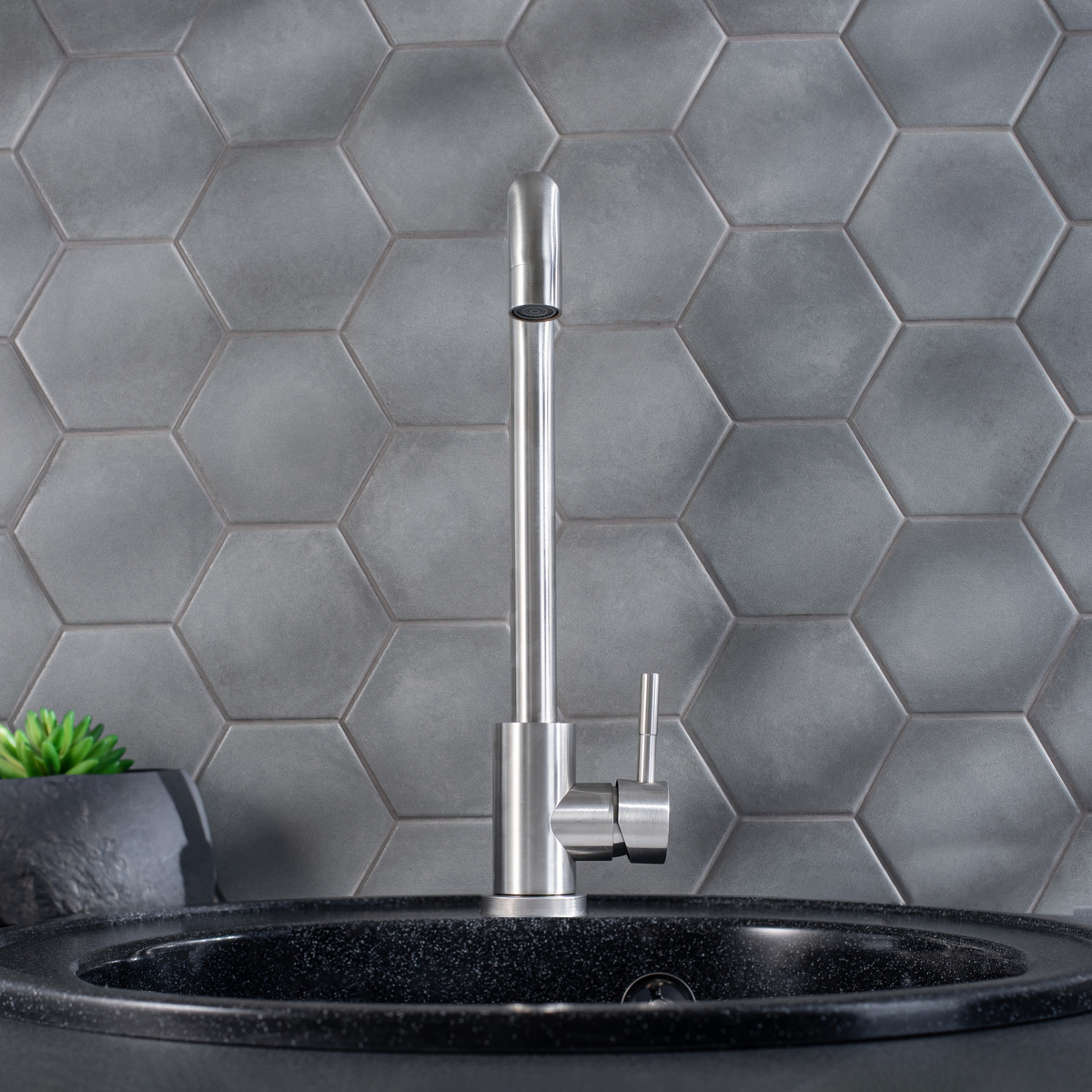 Стильный и надёжный смеситель для кухни. Рукоятка обеспечивает удобство использования.